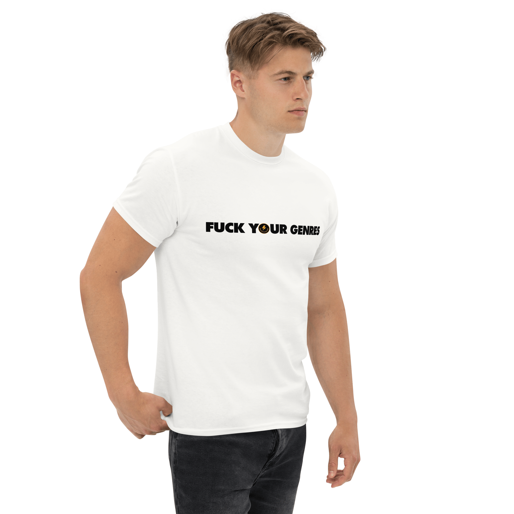 Varispeed - F**k Your Genres on heavy 100% cotton shirt in white.
